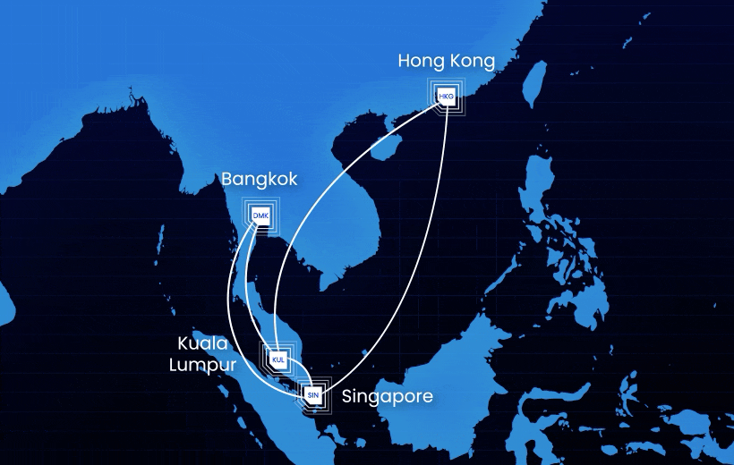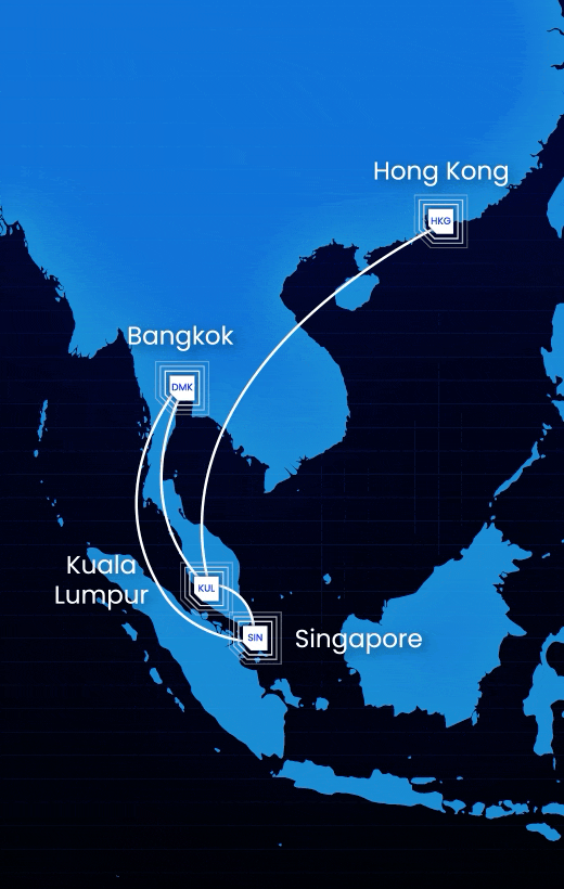 Ship cross-border parcels from Klang Valley to Singapore, Bangkok, and Hong Kong — next day, at up to 75% less than typical express courier rates.
